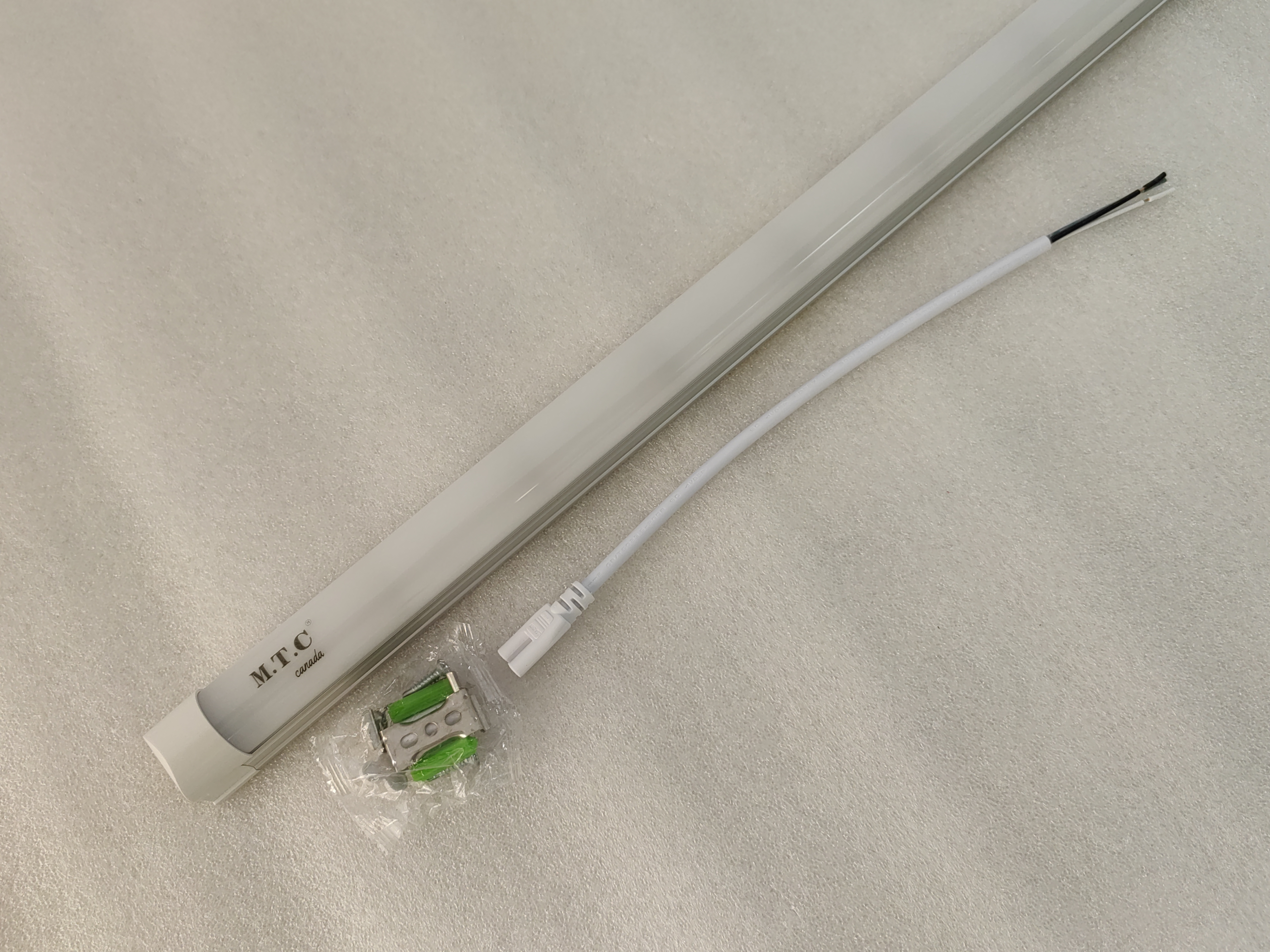 This LED tube operates on 100–130V, 50/60Hz and features a frosted cover for smooth, glare-free illumination. Multiple fixtures can be linked together (up to 8 lights) to create continuous lighting runs.