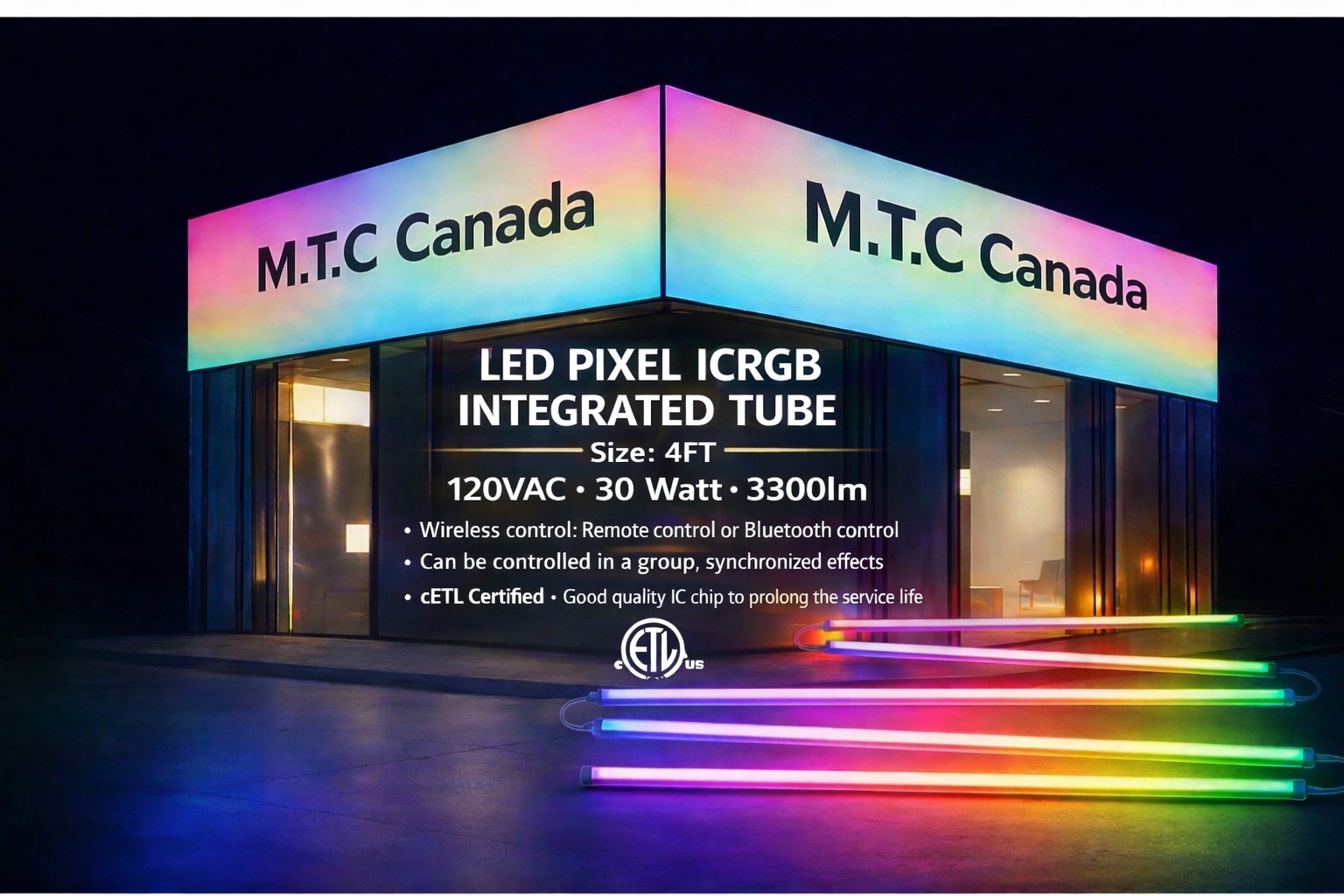 M0833 : M.T.C Canada LED 30W RGB Integrated LED Tube Light Linkable Upto 8 Piece in series Input 100-130V | cETL Certified To CSA STD 22.2 Change Colour With App or Master Remote