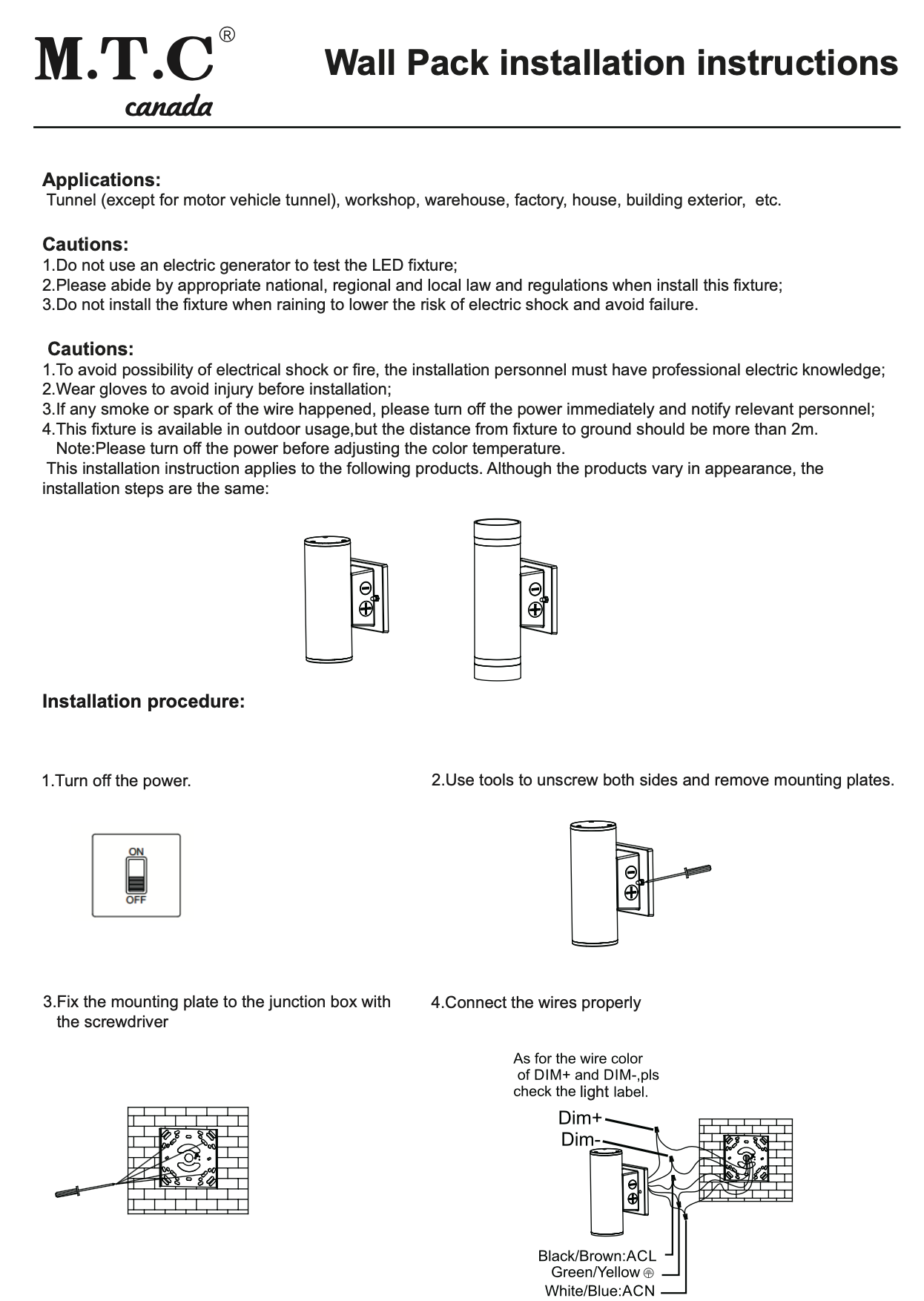 Built with safety and efficiency in mind, this wall pack operates on AC 120–277V, 60Hz, is Cul Certified (Safety.ca), and includes a Plug in photocell for automatic dusk-to-dawn operation ( If no need Photocell sensor , Simply Unplug ) Its durable housing and modern cylindrical design make it ideal for both indoor and outdoor installations.