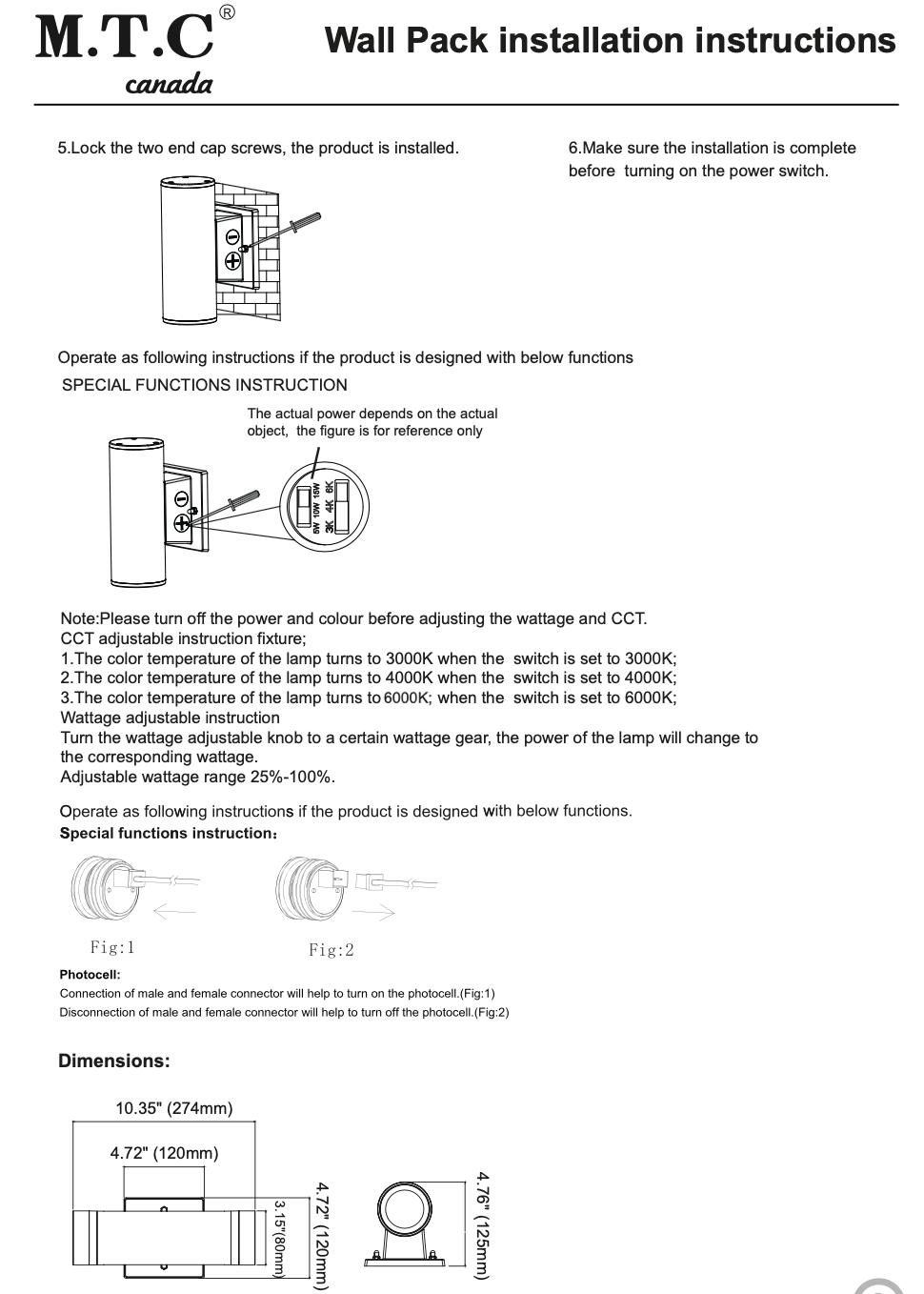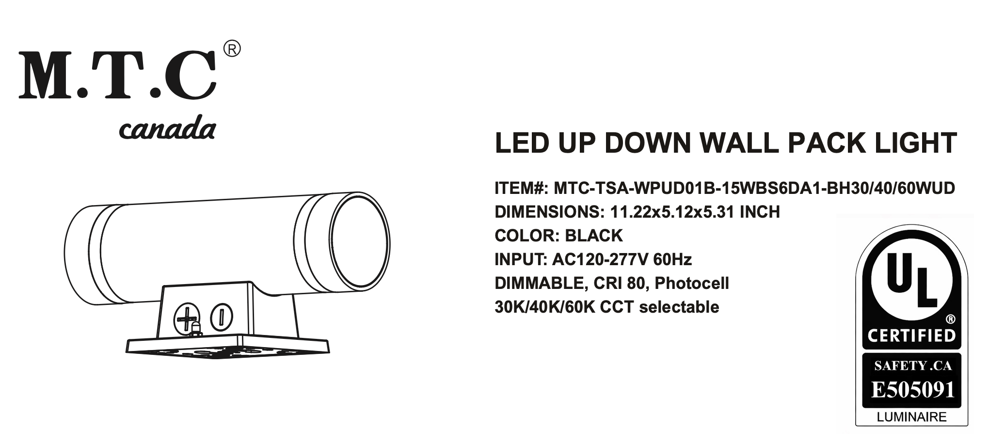 M0835 - M.T.C Canada LED Up Down Wall Pack Light – 5W/10W/15W Adjustable, 3CCT Selectable (3000K/4000K/6000K),