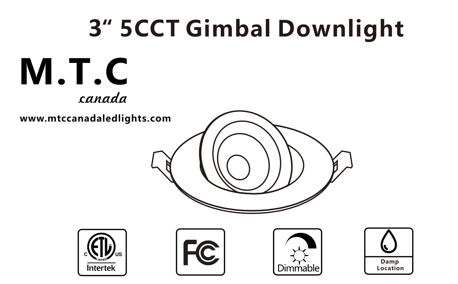 The MTC Canada 3” 8W 5CCT Gimbal LED Downlight delivers powerful, energy-efficient illumination in a compact and adjustable design. Engineered for both residential and commercial applications, this fixture features full 360° rotation for precise directional lighting—ideal for accent walls, artwork, kitchen areas, hallways, and retail displays.