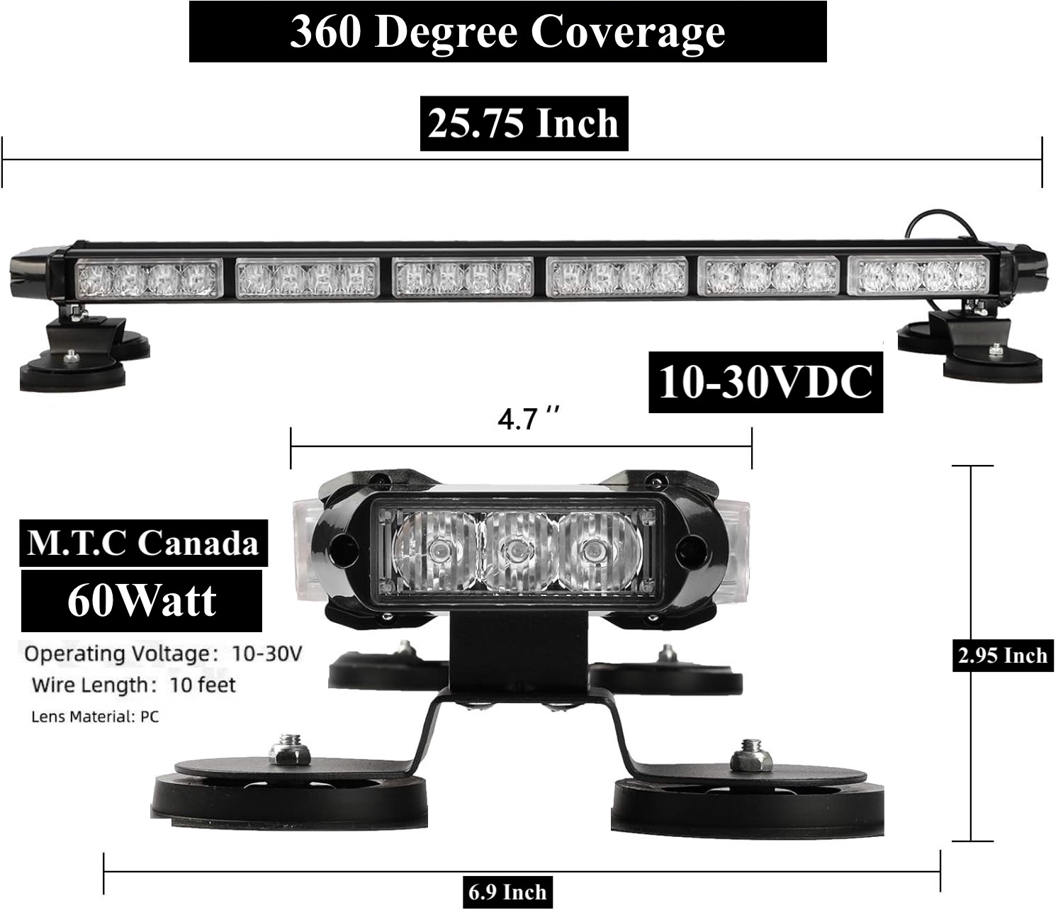 ✔ 60W High Power Output – Bright and effective amber warning visibility