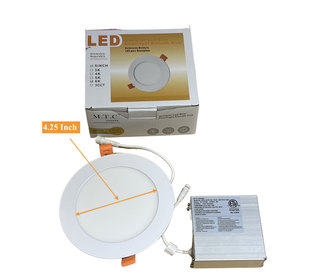 M0550 : M.T.C Canada LED Slim Pot Light 5 Inch 9W 900 lm Dimmable 6000K Cool White /3CCT Change Colour With Button Hole Size Need 5.2 Inch Outside Diameter 5.85 Inch