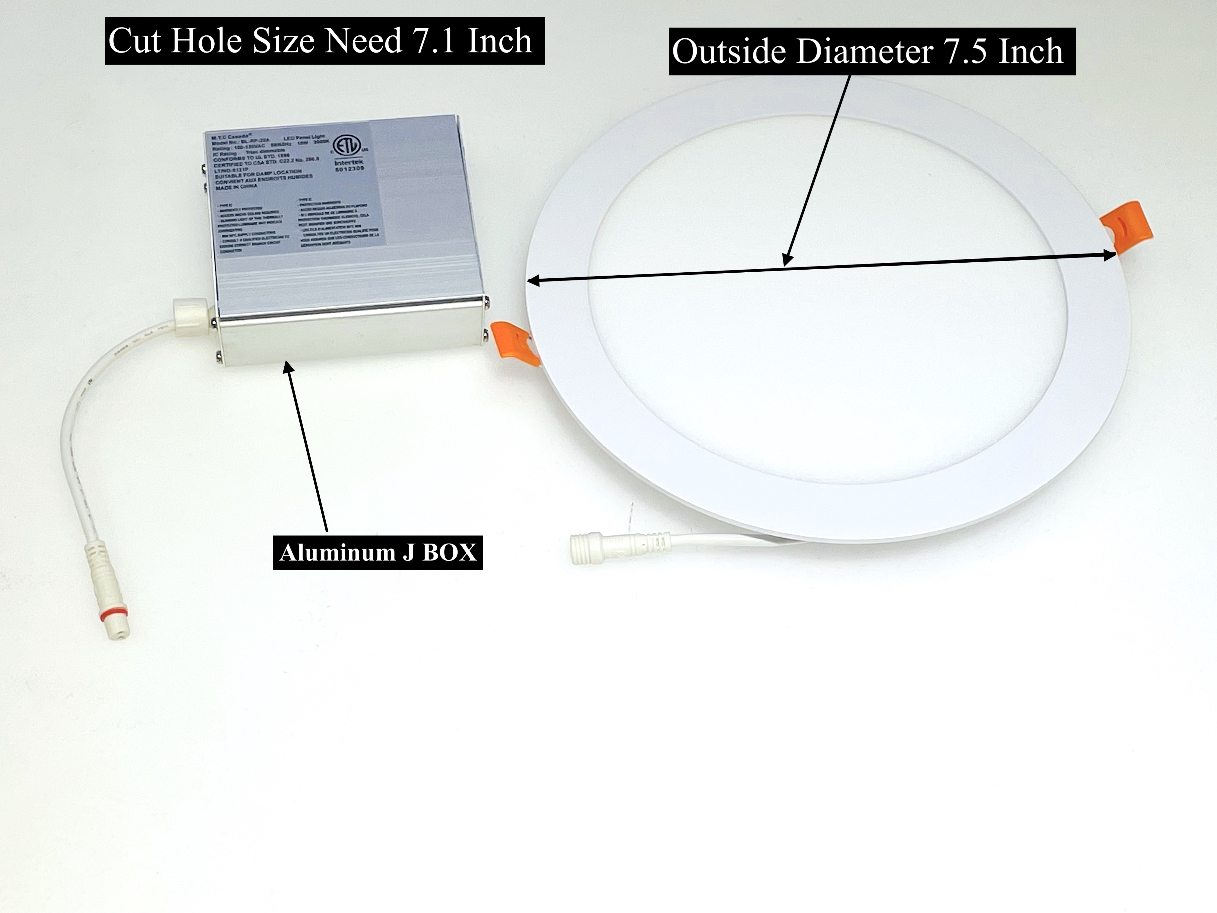 M0551: M.T.C Canada LED Slim Pot Light 7 Inch 15W 1350 lm 6000K Cool White /3CCT Model 3K-4K-5K (Change Colour With Button) Hole Size Need 7.1 Inch Outside Diameter 7.5 Inch With Aluminum J BOX
