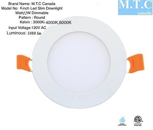 M0286 :LED 6 inch slim panel light Round, Dimmable, 12W 3000K/4000k/6000K Luminous 1080lm ,CETL Certified,Suitable for WET Locations, IC Rated,Easy Installation into Standard 6