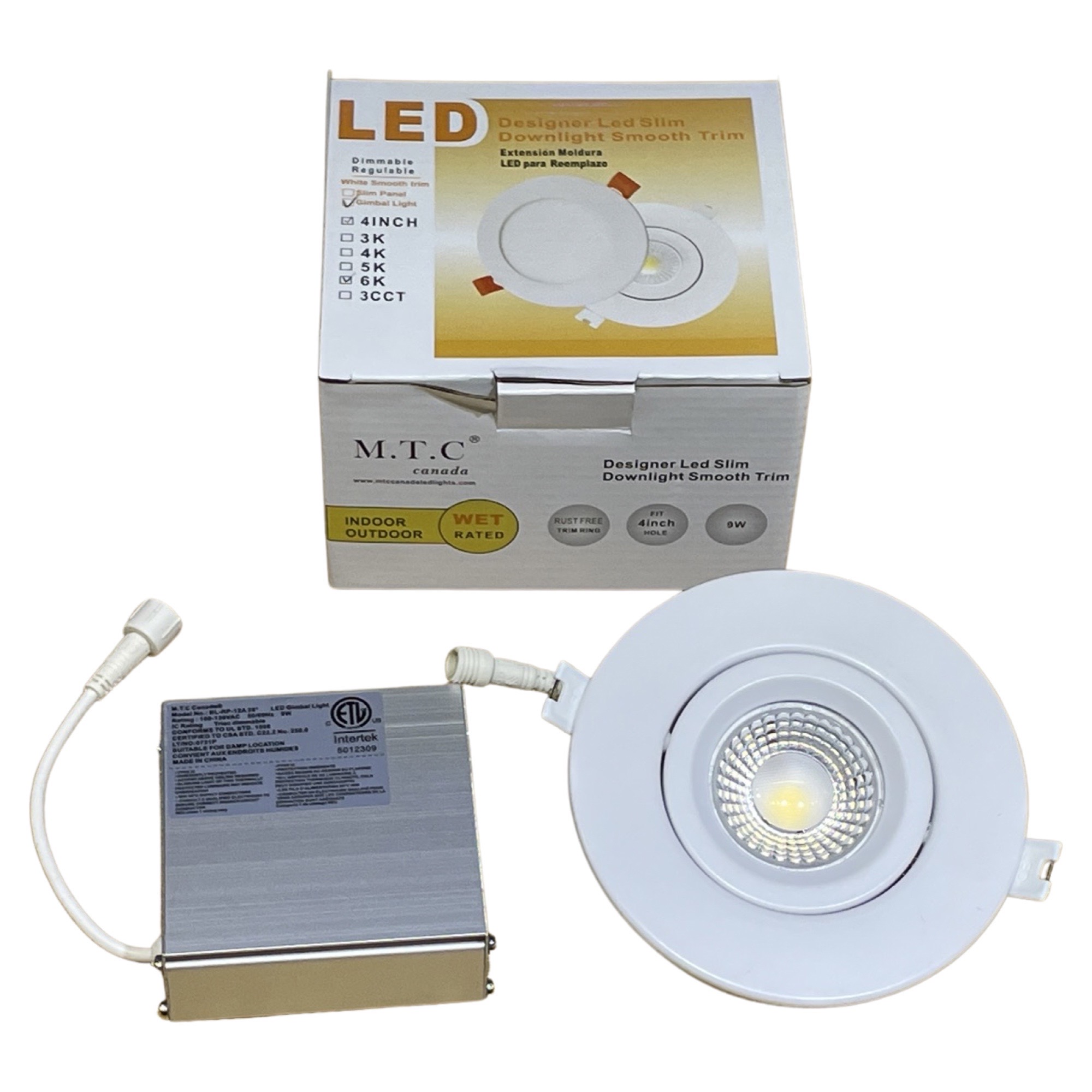 M0554: LED 4 inch slim panel light Round Gimbal Style Dimmable, 9W 3000K/6000K Luminous 810lm ,CETL Certified,Suitable for WET Locations, IC Rated,Easy