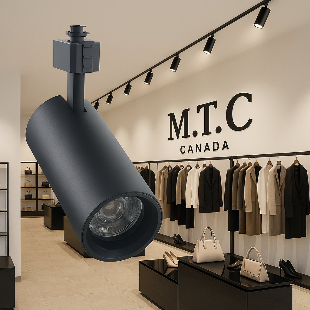 M0683-B COB M.T.C Canada LED Track light 30W 3000lm 3 Pin 3cct (3000K,4000K,6000K ) Change Colour With Button at Back side CETL 3 Pin H type track Fit , Input 120VAC Black Housing