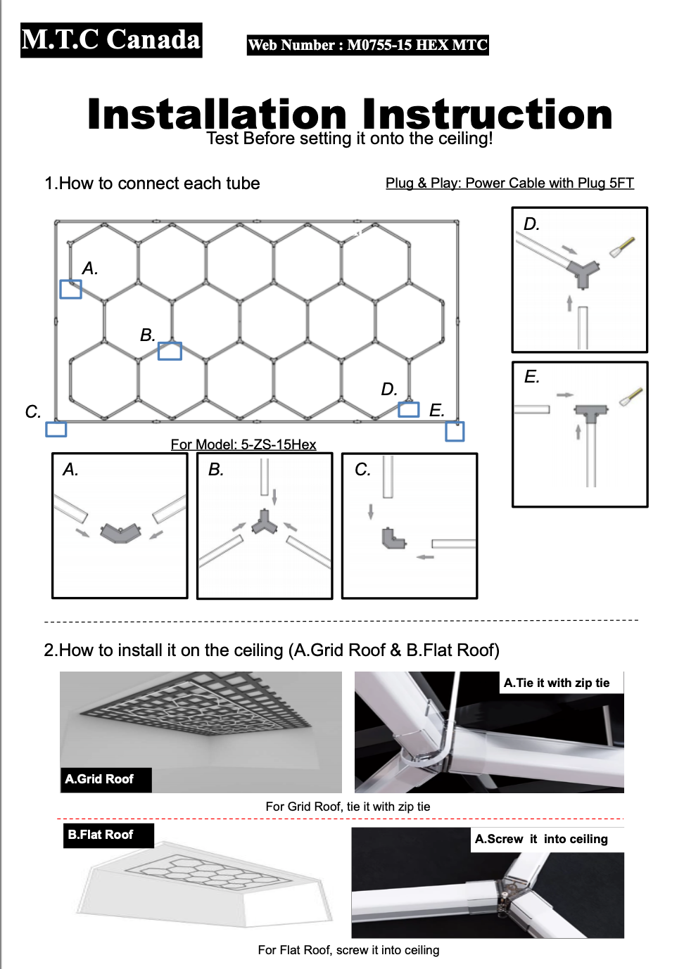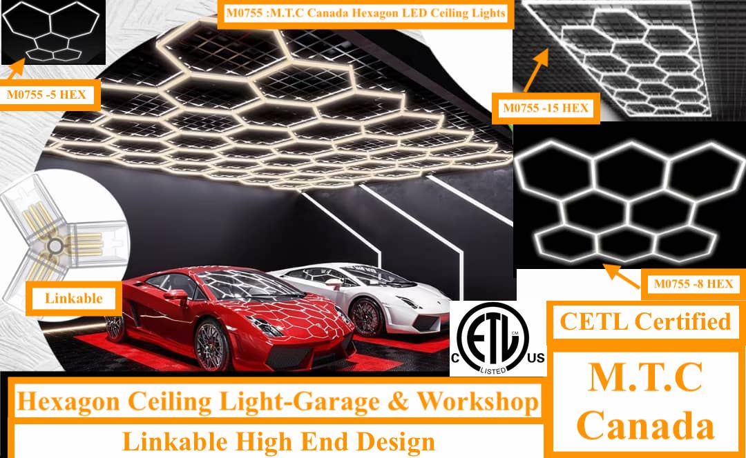 M0755 : M.T.C Canada LED Hexagon Lights Series Input 100-277VAC 6000K Available in 5 Hex , 8 Hex and 15 Hex and Make Your Own Design CETL Certified