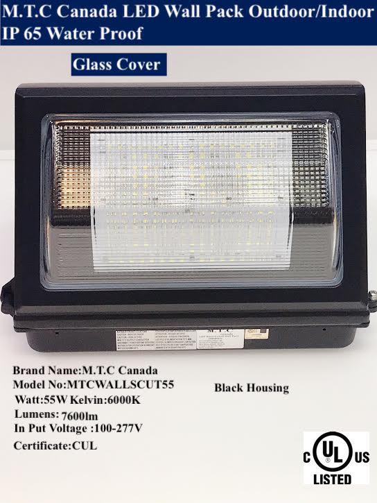M0318: M.T.C Canada LED Wall Pack Semi Cut 55W 6000K 7600lm Input Voltage 100-277V CUL Certified Outdoor Use